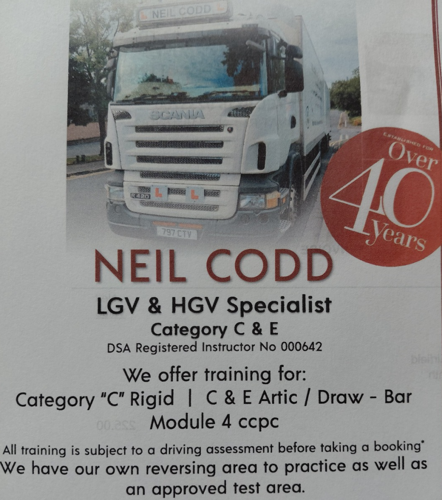 "Excellent experience with Neil doing my class 1 many years ago. He's my first choice if I need to train any drivers up"